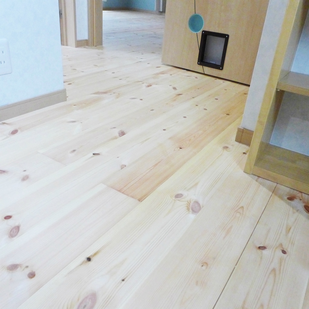 - 広めのリビングには床板をはじめ無垢材もたくさん